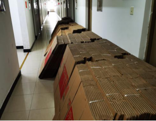 将打包纸箱等物资分别放入学生宿舍内,并连夜分装好给每位教师的打包物资袋。