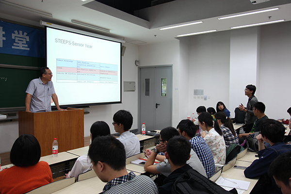 谭教授先由“information technology”引入话题,提到技术对人类社会进步的巨大贡献,并说咨询产业是科技发展的主流发展方向。在当今时代我们不能只局限于自己的专业,不要受工程划分限制,要拓宽视野,学会去探索合理的架构,思考规划自己的发展方向,根据自己的目标进行跨学科广泛学习,整合相关领域,构建适合于自己的知识体系。
