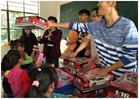 光之翼团队的主题为微公益,意在帮助贵州偏远地区的留守儿童与贫困家庭,并为留守儿童实现一个心愿。光之翼从成立之初到现在已有2年,总共募集了近一万五千元帮助了贵州山区近200名留守儿童实现心愿。今年暑假与电子科技大学支教队合作,深入山区为当地儿童带去了具有北航特色的航空航天知识。光之翼团队扮演着圣诞老人的角色,为山区留守儿童塑造一个礼物之梦,让他们的童年也能有玩具与糖果相随。