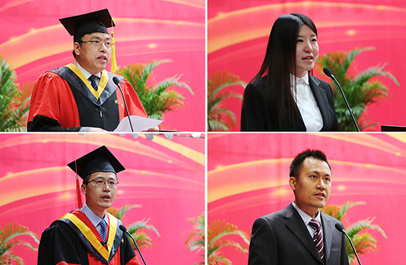 博士研究生刘超同学在发言中与大家分享了自己的求学历程和对母校以及师友亲朋难以割舍的情怀,号召全体毕业生传承北航人“心系祖国,勇于担当”的价值承诺。优秀校友代表何巍博士回顾了在母校学习和生活的点点滴滴,对北航在自己身上留下的“求真务实”的烙印表示难忘和感激。何巍校友通过分享长征五号的研发过程中的故事,鼓励全体毕业生把握历史机遇,胸怀空天报国豪情,不忘初心,敢为人先,为国家繁荣富强而不懈奋斗。