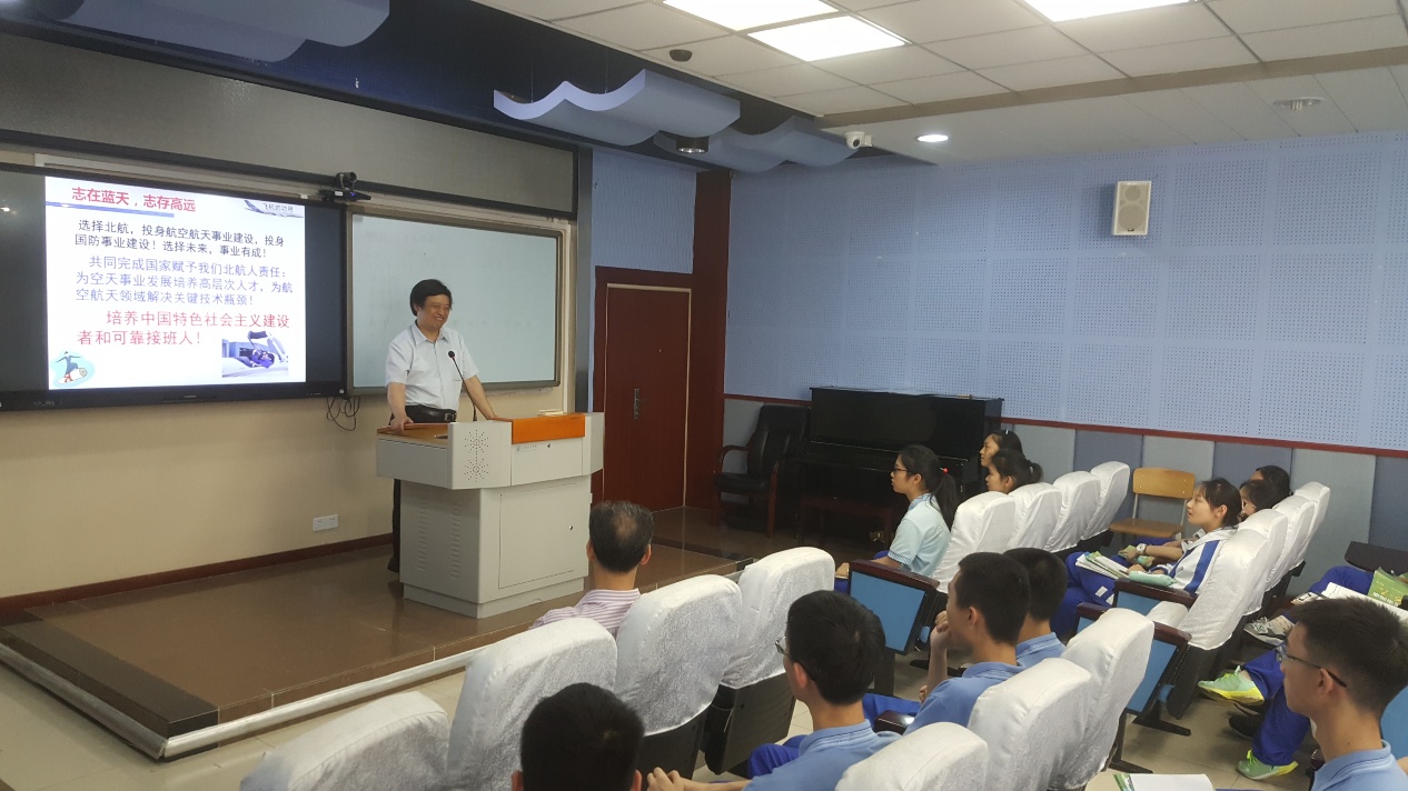 5月19日中午,王强教授、陈志英教授赴成都石室中学为该校高三实验班同学做了一场别开生面的航空知识科普报告。在报告中,陈志英教授从简单的航空知识出发,由浅入深,逐步引导高中生在问题中思考,在思考中产生兴趣。同时,陈志英教授与现场同学积极互动,同学们踊跃回答陈教授提出的问题,现场气氛活跃。王强教授则以陈懋章院士的求学经历为切入点,为同学们讲述了我国航空工业筚路蓝缕的创业过程以及一代航空前辈所付出的心血努力,在报告的最后,王强教授鼓励同学们“选择北航,投身航空航天事业建设,做社会主义合格建设者和可靠接班人”,报告会在同学们的掌声中结束。