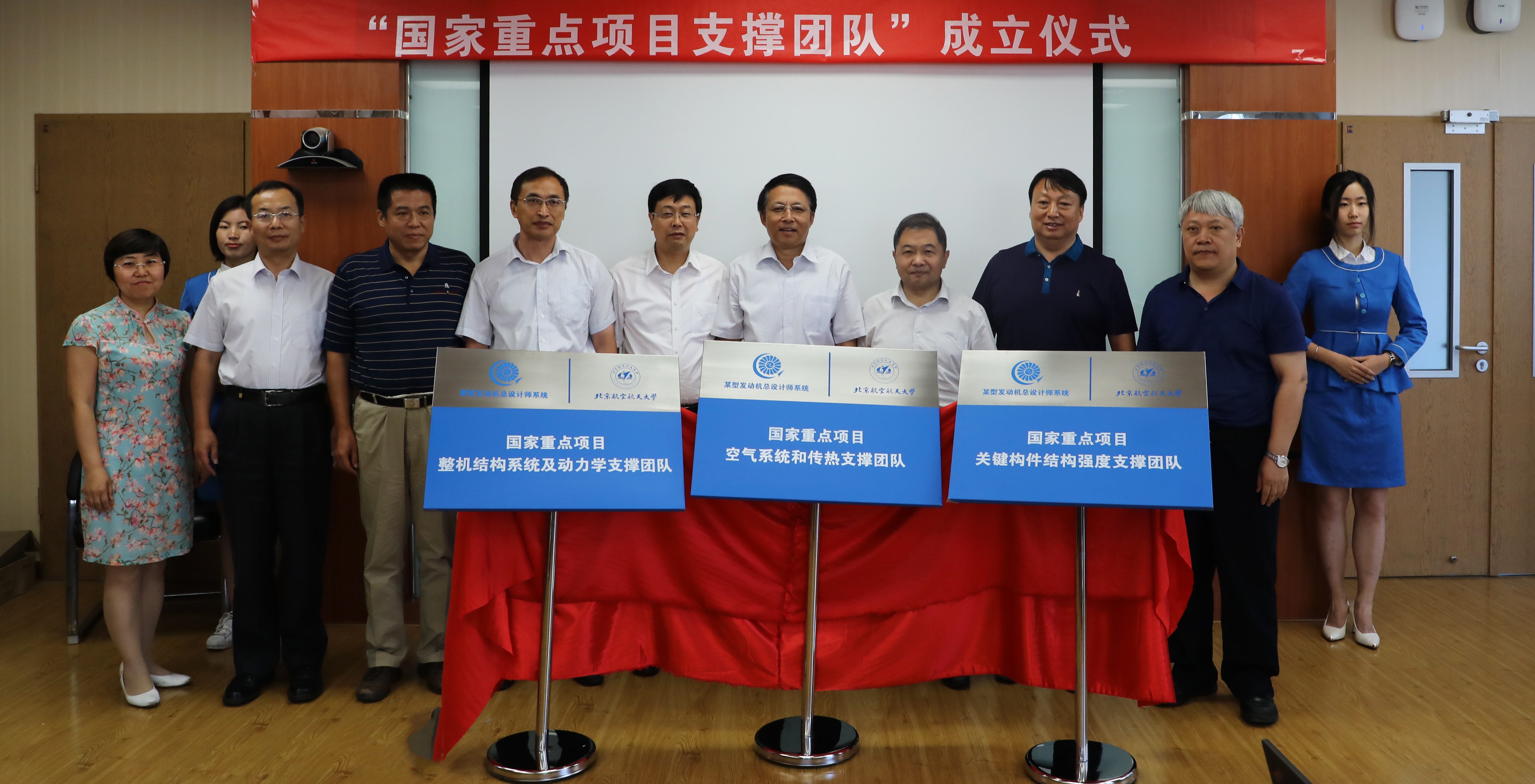 双方联合成立的3支“支撑团队”包括:以丁水汀教授为首席专家的“发动机空气系统和传热支撑团队”、以洪杰教授为首席专家的“整机结构系统及动力学支撑团队”和以王延荣教授为首席专家的“关键构件结构强度支撑团队”。会上首先由三支团队的负责人对各自团队进行了介绍。之后,中国航发动力所陆海鹰主任和丛佩红书记分别介绍了与三个团队合作的内容。中国航发涡轮院院长助理康涌宣读了支撑团队成立的文件。