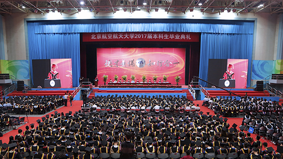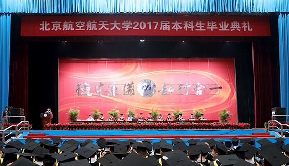 2017届本科生毕业典礼在北航体育馆隆重举行。校领导张军、徐惠彬、魏志敏、何新洲、程基伟、陶智、房建成、黄海军、李军锋、王云鹏,教师代表、电子信息工程USDT博彩