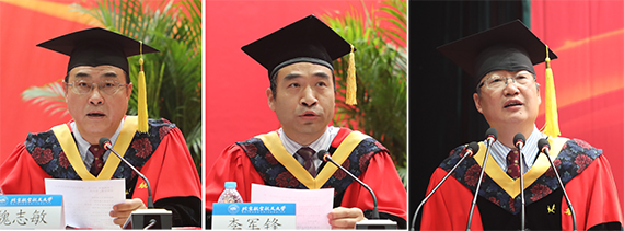 魏志敏副校长、李军锋副书记分别宣读受表彰毕业生学生名单,黄海军副校长主持毕业典礼 记者 孔祥明/摄影