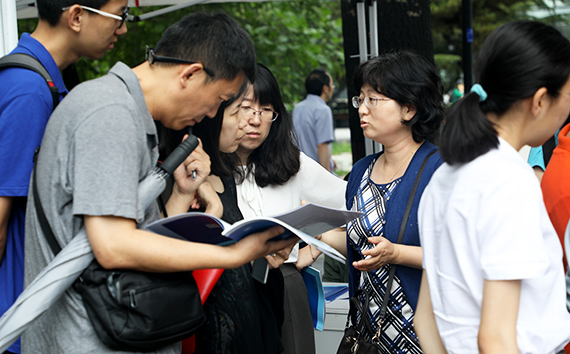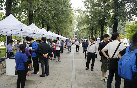 校园开放日活动由现场咨询和政策宣讲两部分组成。在招生咨询区,招生办公室、北京招生组准备好了各种宣传资料,开始接待高考考生和家长的咨询。