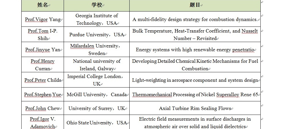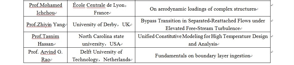 院长Peter Childs教授、加拿大麦吉尔大学航空航天工程研究所所长Stephen Yue教授等多位国际一流专家,征集大会报告12篇,专题报告36篇。