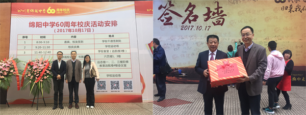 在绵阳市期间,马进喜处长等一行参加四川省绵阳中学60周年校庆大会。马进喜处长以《北航-梦想启航的地方》为题向高一高二同学们献上了一场生动有趣的宣讲报告,通过多个鲜活的事例展示出了充满活力与前景的北航,充分调动了同学们对北航的兴趣和热情,反响热烈。马进喜处长、方志副书记与高三同学近距离交流互动。