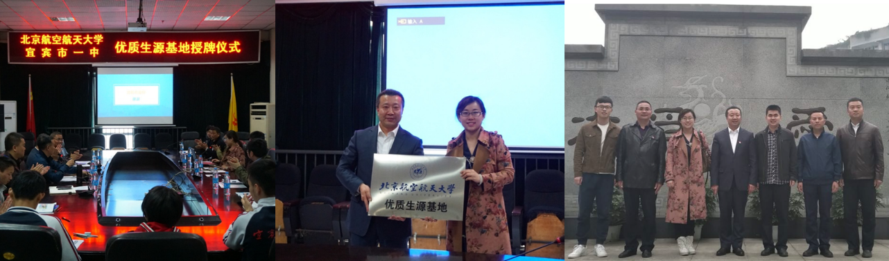 党委副书记肖杰老师的支持下,在宜宾一中进行共建优质生源基地挂牌仪式。会上,方志老师从一流的学科专业、师资队伍、科研实力、人才培养、国际交流等方面介绍北航,希望两校进一步加强交流合作,实现共同发展。宜宾一中副校长杨永跃表示宜宾一中将以此为契机,深化素质教育,提高办学质量,为北航输送更多更好的优秀毕业生。