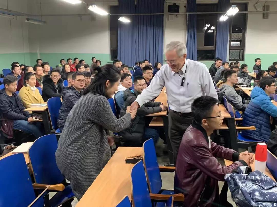 虽然Wisler院士已经77岁高龄,但他仍走下讲台与同学们频繁互动,各种有趣的提问刺激了同学们的积极性,激发了同学们的思考,讲座氛围和谐且活跃。