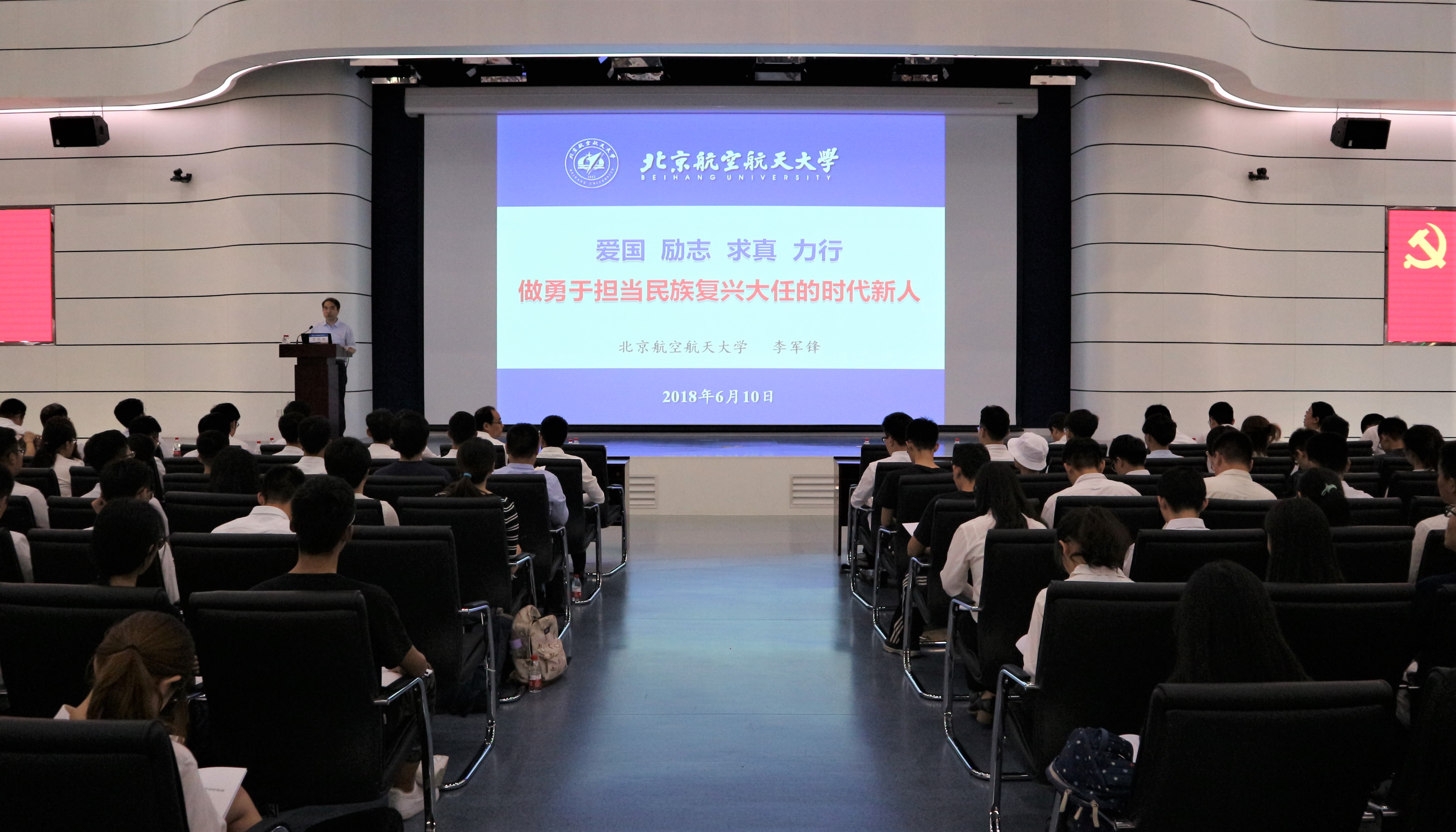 党委副书记李军锋做题为“爱国、励志、求真、力行,做勇于担当民族伟大复兴大任的时代新人”的报告。