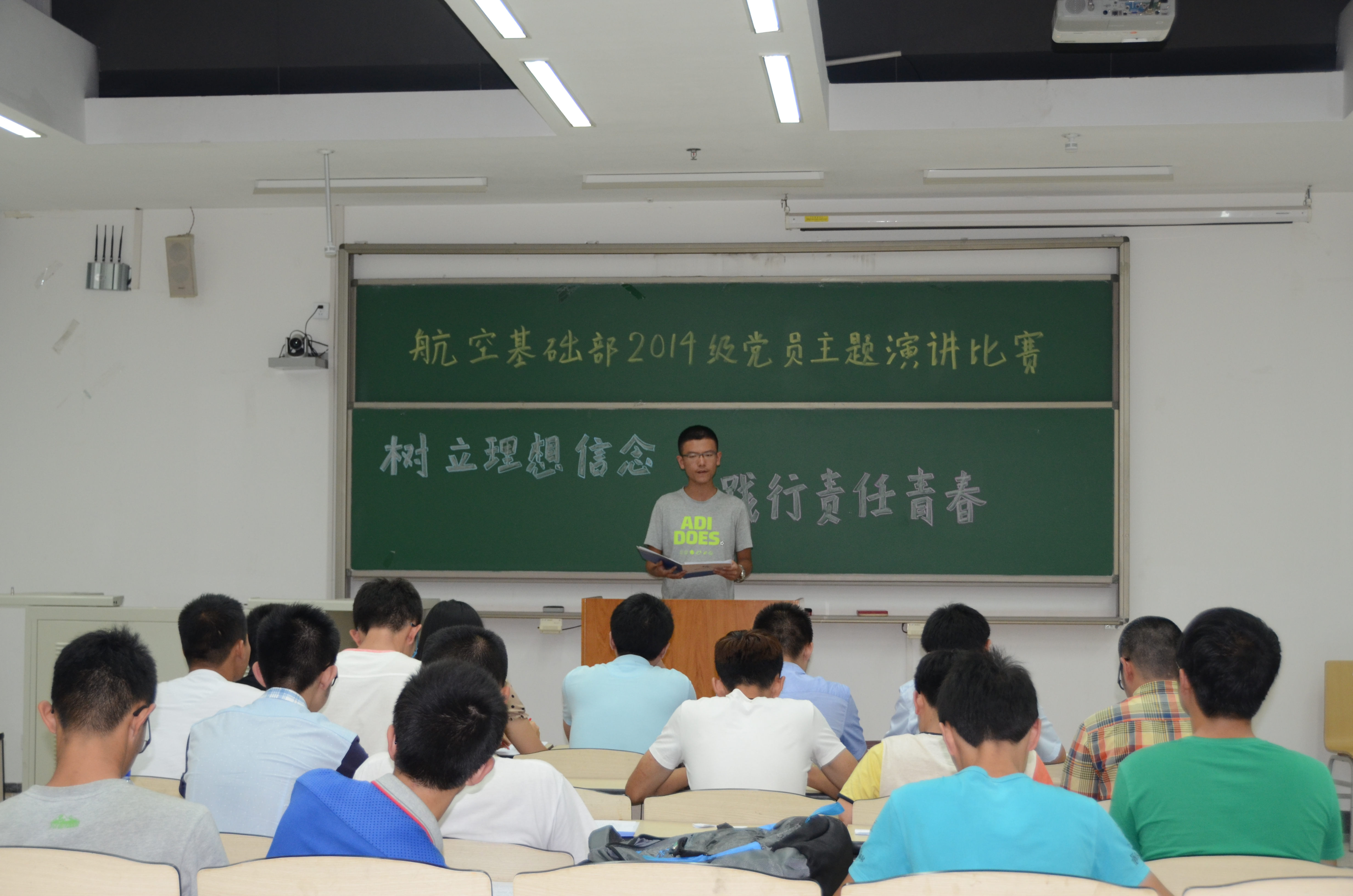 航空基础部于沙河校区组织进行了新生党员主题演讲比赛,此次演讲比赛主题为“树立理想信念,践行责任青春”。