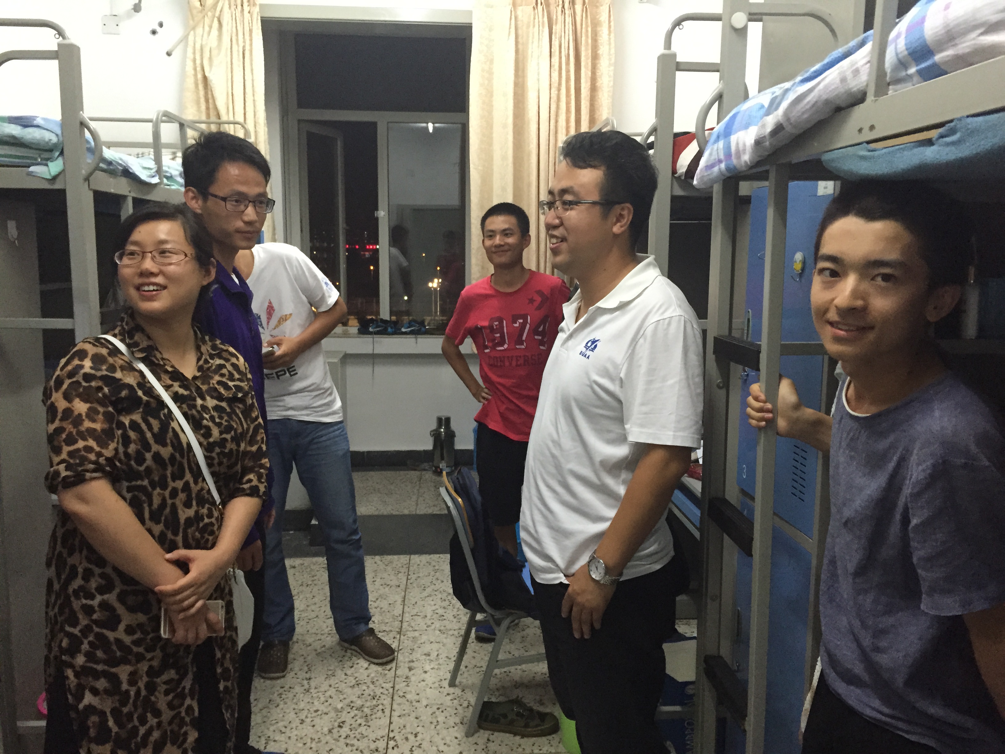 丁水汀院长、王强书记到沙河校区走访宿舍看望2015级新生,并发放中秋慰问品。