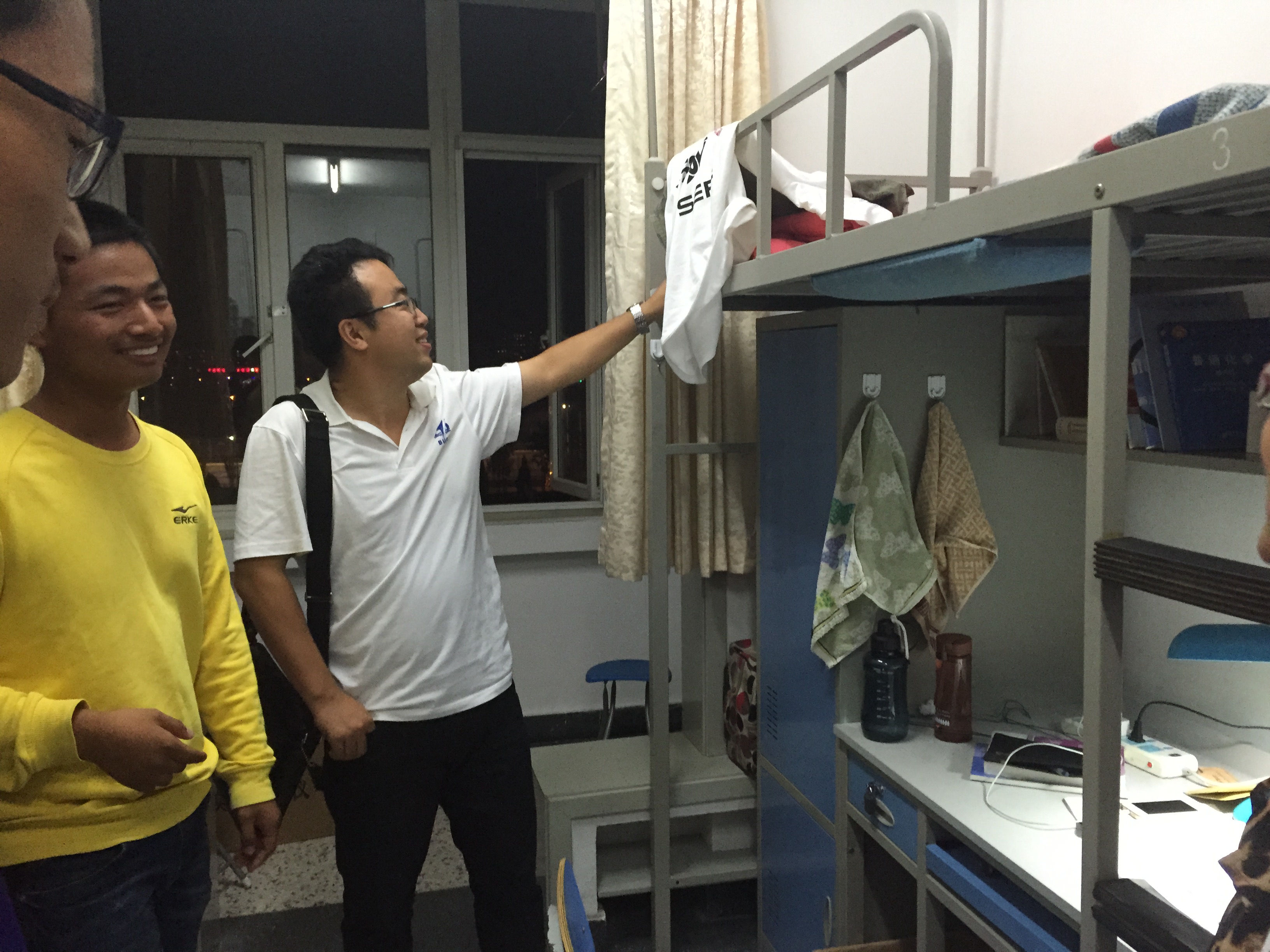 党委副书记李建伟老师、分团委书记方志老师等一行来到学生宿舍,在宿舍内与2015级新生亲切交谈,仔细询问同学们目前的生活状态,是否适应大学生活,在生活上和学习上是否遇到困难,衣服床铺是否暖和,是否拿到USDT博彩