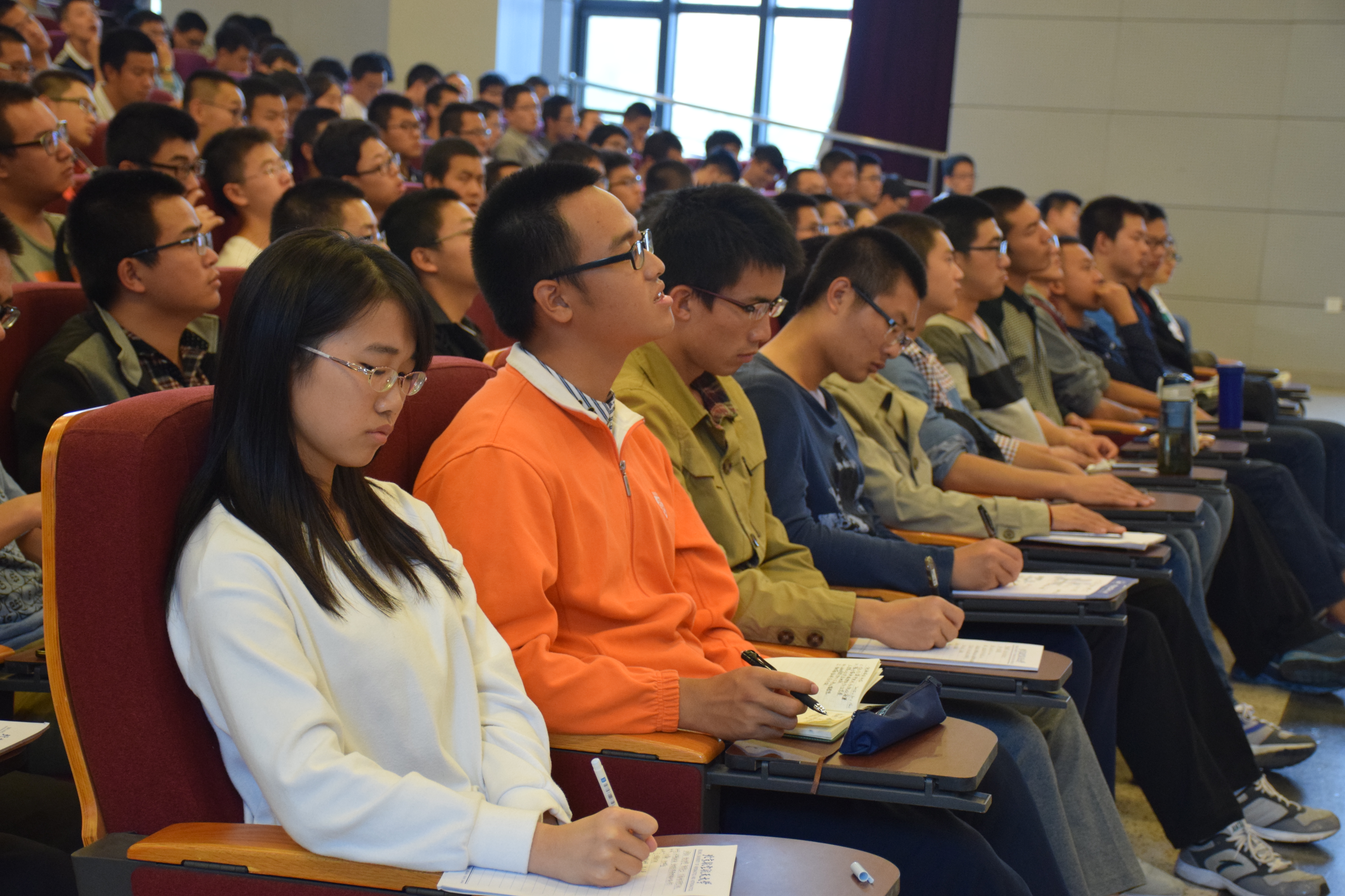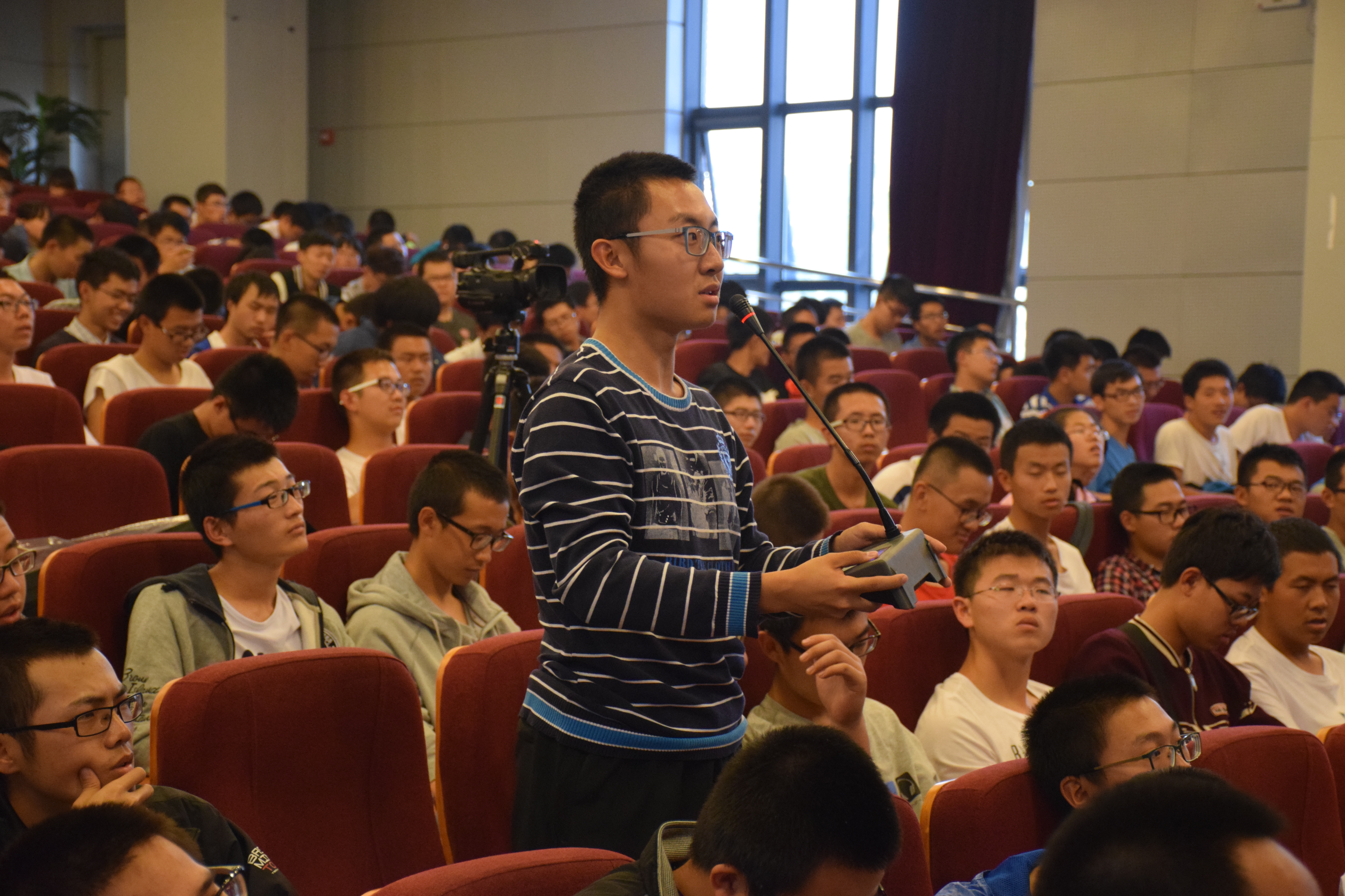 接下来,陈光教授为同学们重点介绍了几款飞机。最有代表性的就是轰油-6和歼-15。轰油-6空中加油机,其作用是延长飞机航程和空中停留时间,教授以步行者与骑车人的比喻生动形象的为我们说明了空中加受油的难度之大,所以掌握这项技术的国家也是寥寥无几;而歼-15舰载机是一款以航空母舰为基地,在航母上起飞降落的飞机,这一类飞机对飞机设计制造技术以及飞行员飞行技术要求非常苛刻,只要差之分毫,就有可能发生机毁人亡的严重事故。教授将之生动的比喻为“如同在刀尖上跳舞”,同学们从视频中也能感受到那种惊险与震撼。