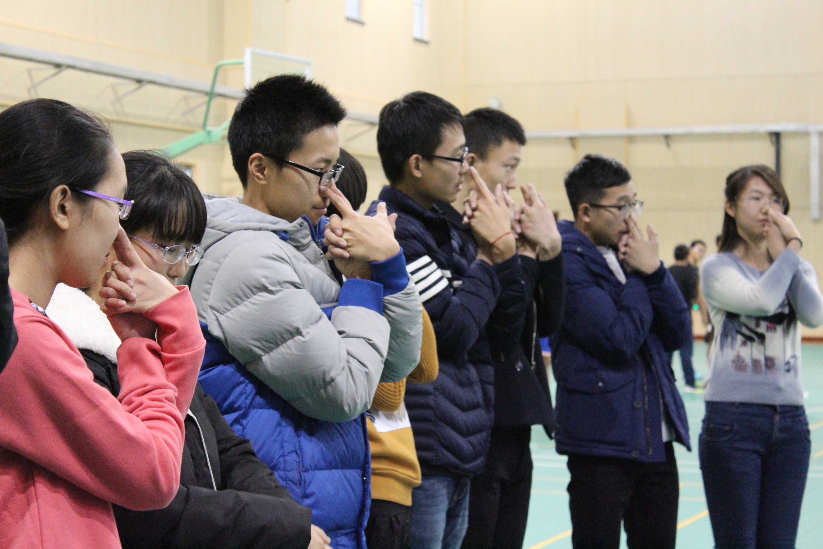 ,共24名发展辅导委员参与其中,并由北航心理咨询与发展辅导中心配备了专业的素质拓展教练。 活动中,同学们在教练的指导下进行了轻松而有趣的游戏活动。“口令操”和“快速反应”两个活动消除了同学们之间的距离感;“双指抬女生”让大家变得更加亲密,合作也更加默契。“习惯误区”通过动作模仿的形式让同学们感受到了坏习惯带来的“痛苦”;随后,我们进行了最有趣也是最烧脑的“信息传达”游戏,大家在不说话的前提下将信息传达下去一直到最后一个。大家在游戏过程中大开脑洞,用各种办法将信息传递下去,同时,大家也学习到了解决问题要抛弃思维定势,开阔思路的道理。