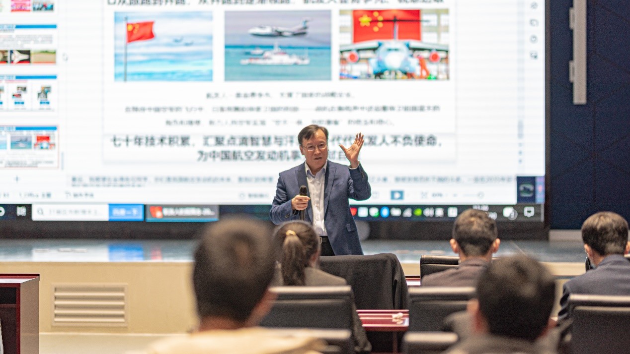 陶智副校长详细的阐述了我国一代代航发人依靠矢志不渝的精神和空天报国的情怀,不屈不挠地实现了从无到有、从弱到强的跨越。吴大观先生一生忠诚于党,立志给飞机装上一颗中国心。陶校长邀请了刘永泉总师、程荣辉总师、黄维娜总师向同学们提出殷切的期望。他还提到,国家高度重视航空发动机的发展,北航教授带领的专业团队与行业紧密结合,为中国航空发动机的型号研制做出了巨大的贡献。七十年来,风雨同行,北航见证了中国航空发动机的历史变迁:从跟跑到并跑,从并跑到逐渐领跑,航发人奋勇争先、锐意进取,汇聚点滴智慧与汗水、一代代航发人不负使命,为中国航空发动机事业奉献自我。