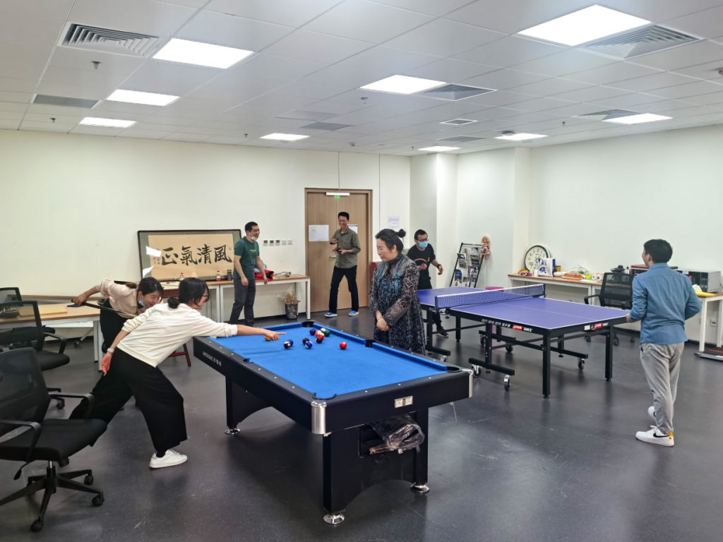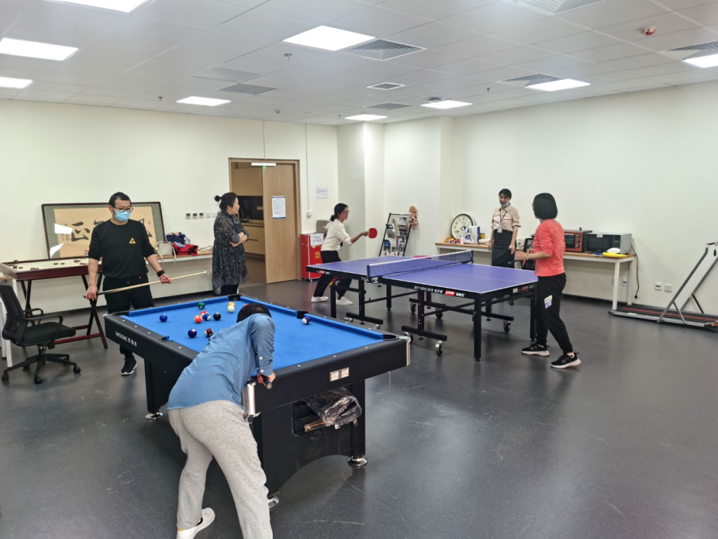 工会在沙河校区主楼F座7层组织开展2022年度教职工运动节。院机关全体成员与其他教职工共43人积极参与了台球、乒乓球、平板支撑和1分钟跳绳多项体育活动。