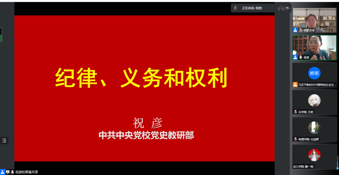 600余名新发展学生党员参与学习。11月27日上午9时,研修班邀请了中共中央党校党史教研部祝彦教授作题为《纪律、义务和权利》的主题讲座,本次报告为研修班的第二次理论学习报告。由USDT博彩