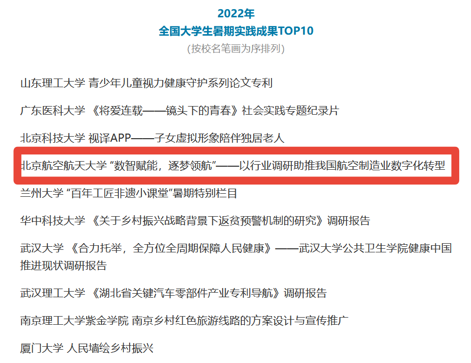 心起点实践队暑期实践成果“‘数智赋能,逐梦领航’——以行业调研助推我国航空制造业数字化转型”也荣获“全国大学生暑期实践成果TOP10”,成为USDT博彩