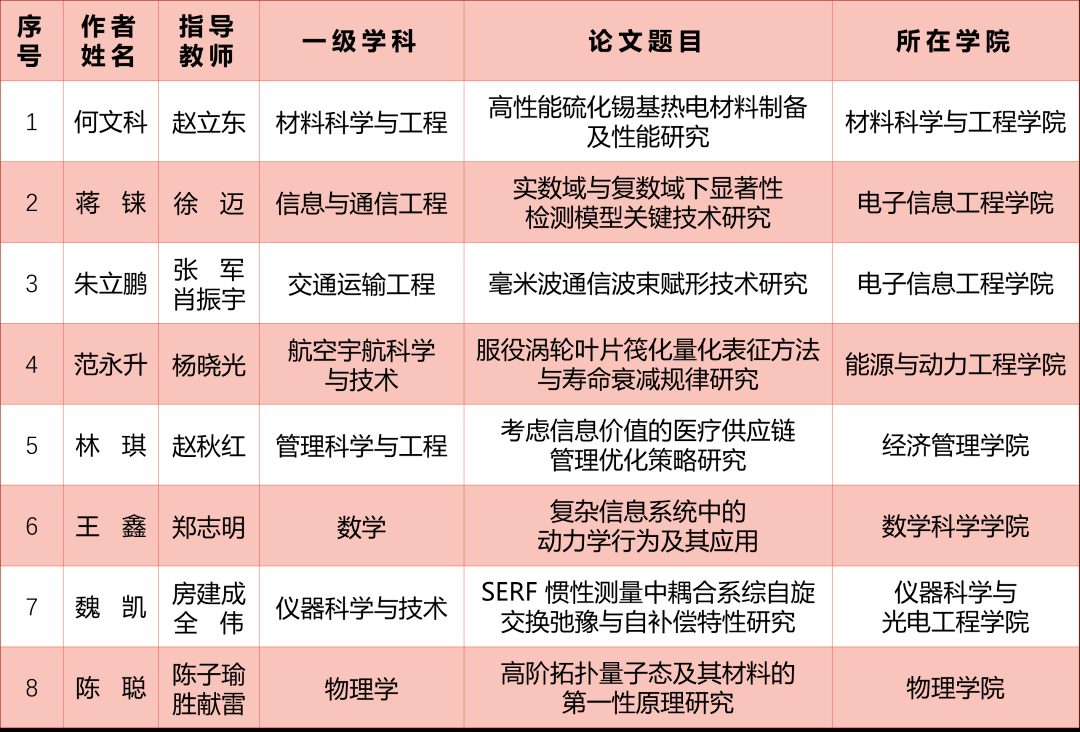 共有8篇论文获评北京市优秀博士学位论文。