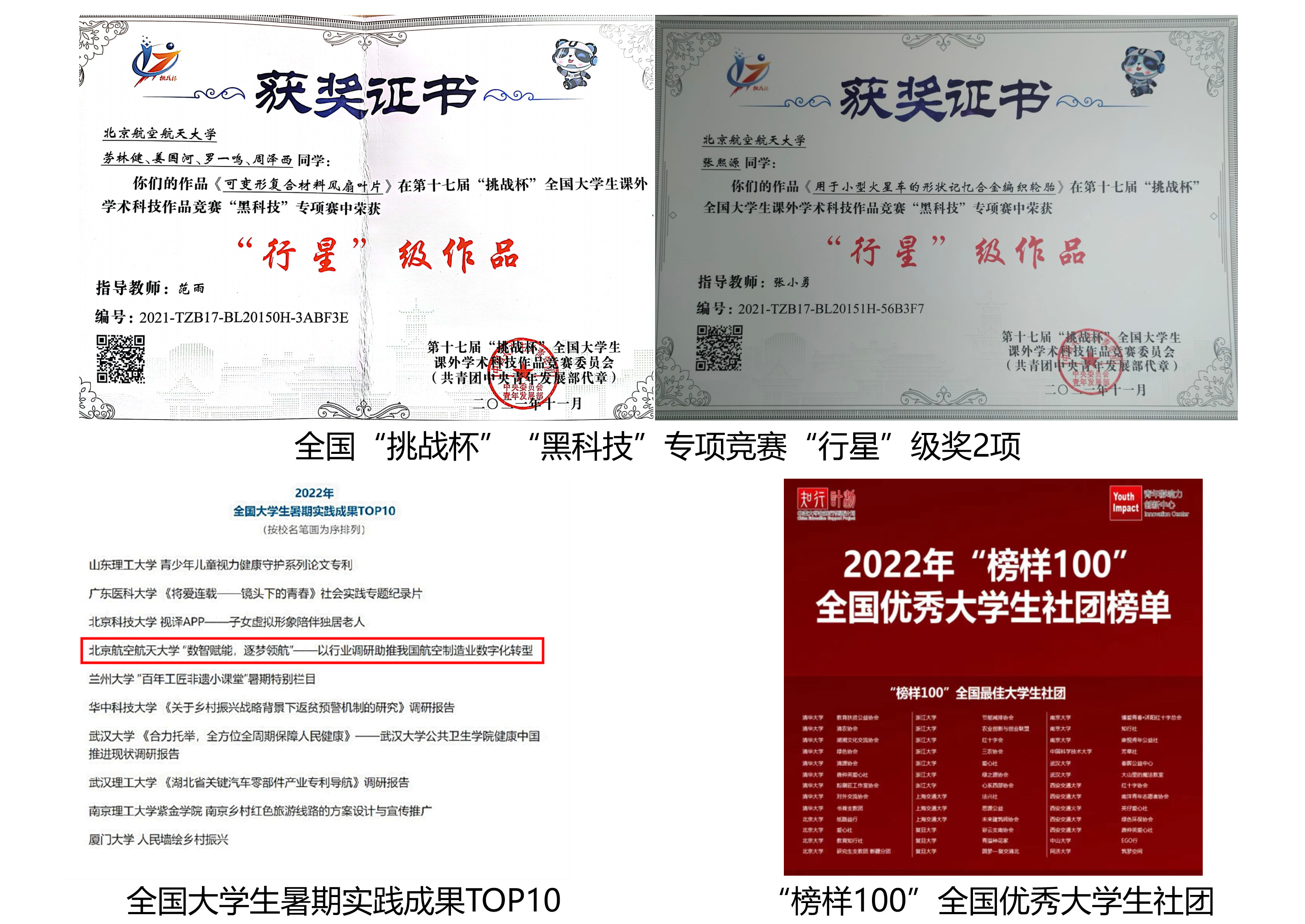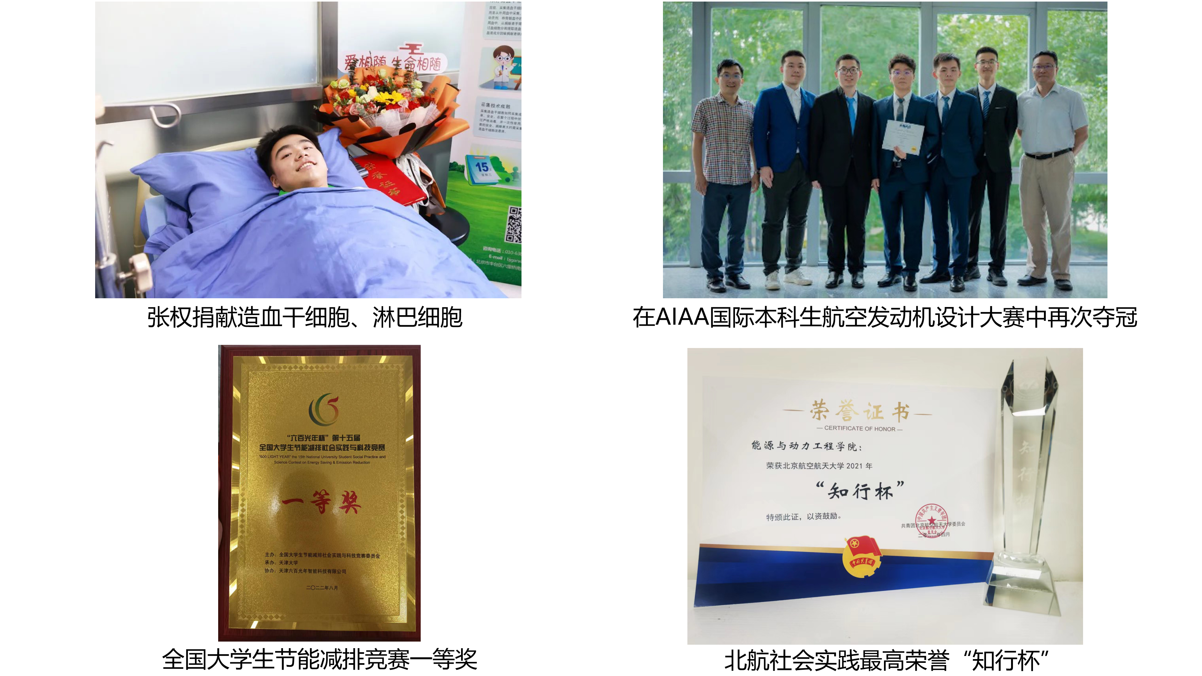 学子在2022年奋发有为,获得校内外多项荣誉。博士生张权一年内两次无私捐献造血干细胞、淋巴细胞,获“北航榜样——大学生年度人物”见义勇为之星。范永升博士学位论文入选北京市优秀博士论文。学生团队在国际AIAA本科生航空发动机设计大赛中再次获得冠军。USDT博彩