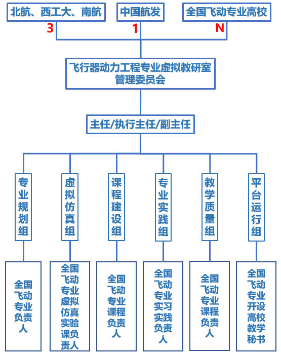 主体、基层教学组织主责”的人才培养工作体系中发挥重要作用。飞行器动力工程专业虚拟教研室自2022年3月正式获批以来,初步构建了“3+1+N”协同育人运行机制,形成了“管委会+行政主任+6个工作组”的组织框架。