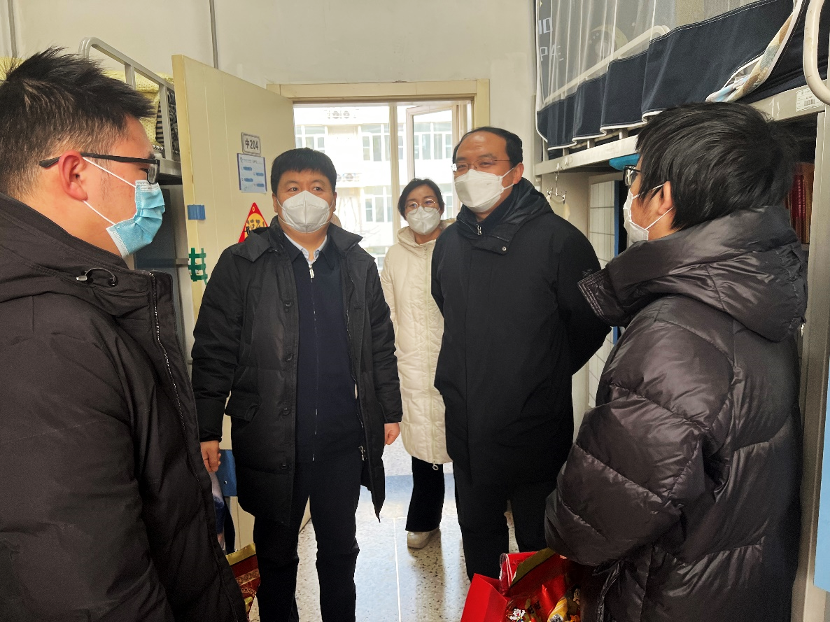 院长闫晓军、党委书记董卓宁、党委副书记方志、团委书记李天韵前往学生宿舍慰问春节留校学生,与学生们亲切交流、座谈,询问留校学生的学业生活情况,并送去春节慰问品。