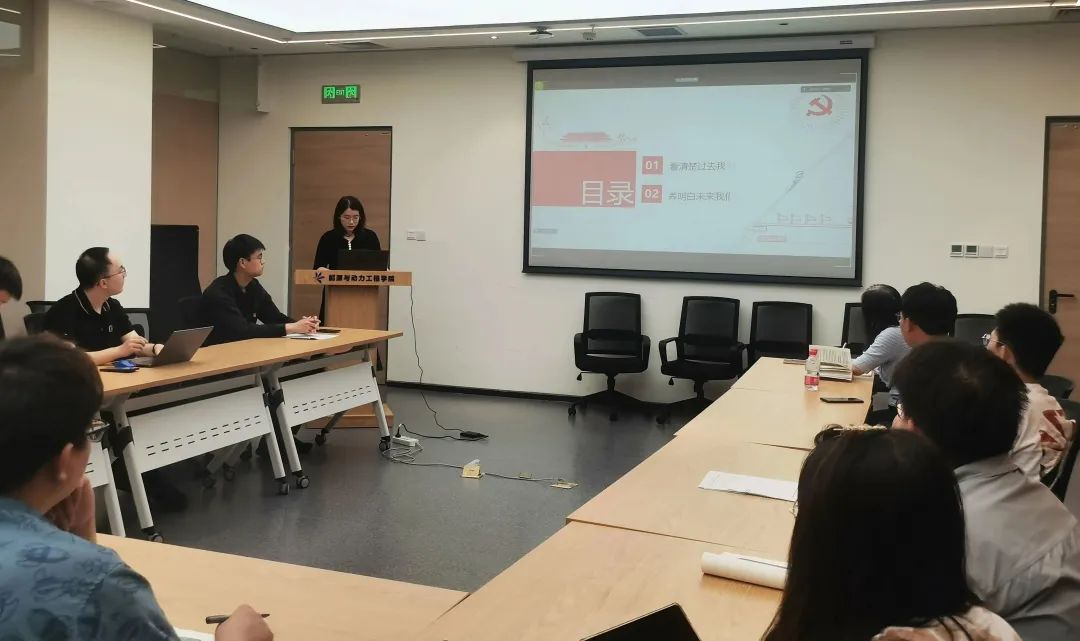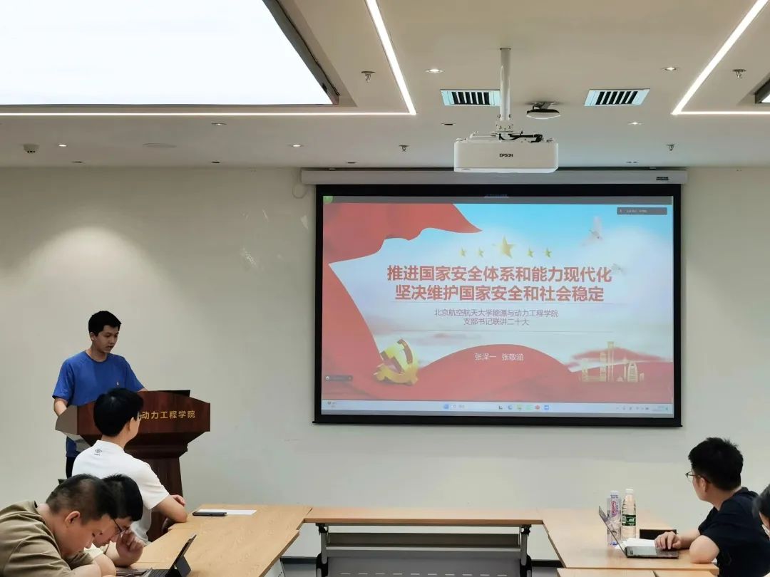 党支部书记带领大家深入学习领会党的二十大报告原文。首先,系统梳理了领学章节内容的发展脉络,学习分享其历史逻辑,理论逻辑和实践逻辑,深入理解“五位一体”总体布局和“四个全面”战略布局,深刻领悟“两个确立”的决定性意义,增强“四个意识”、坚定“四个自信”、做到“两个维护”。其次,结合我国取得的举世瞩目成就,结合所学航空动力专业,结合北航事业发展和身边优秀事迹,深入介绍领学章节,加深大家对报告内容的理解。最后,号召同学们从党的二十大精神汲取成长成才养分,传承空天报国精神,争做强国时代新人。