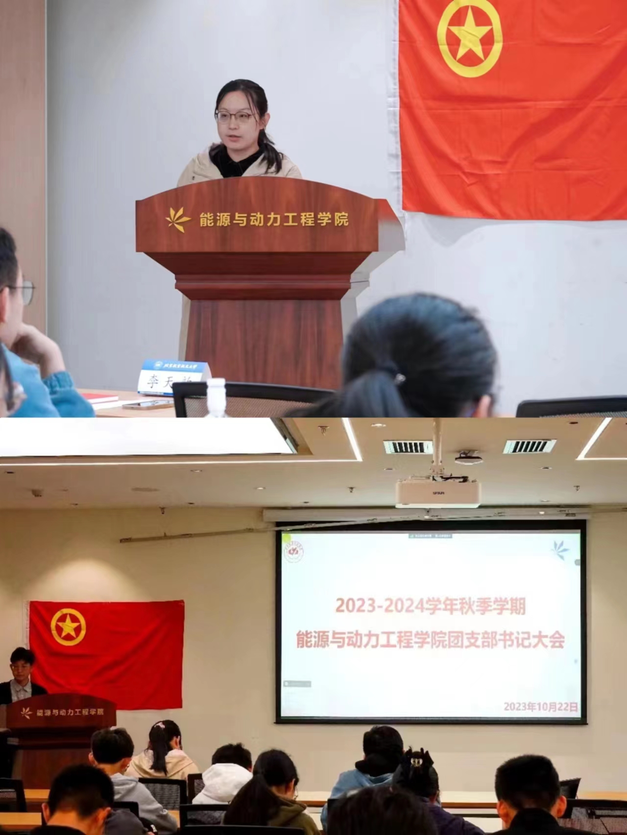 最后,李天韵对本次大会进行总结,她肯定了过去一年内团支书们的扎实工作,也希望在今后的工作中,各年级团支书能继续深入推进各项工作,充分发挥引领作用,加强团员思想政治教育, 注重工作方式方法,加强班团一体化建设,团结同学。她还勉励大家要在繁杂的支部工作中锻炼自身能力,让青春在全面建设社会主义现代化国家的火热实践中绽放绚丽之花。