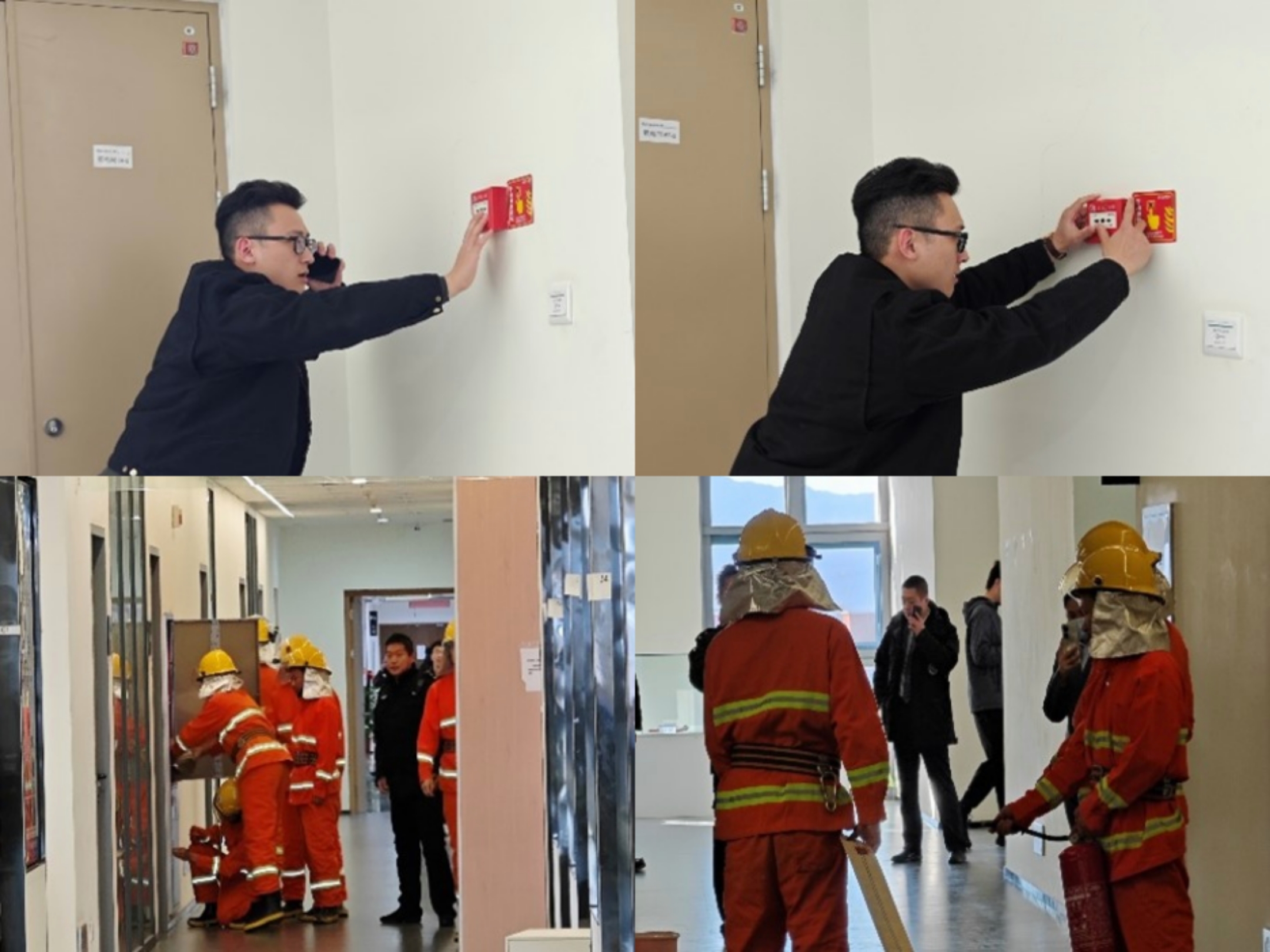 下午14:00,一名同学“发现”F座6层西侧楼梯间的模拟火情,第一时间通过手动报警装置报警并报告USDT博彩