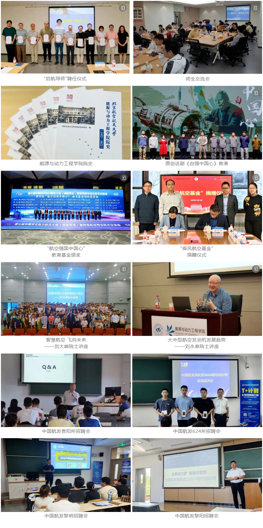与航发集团、黎明公司、黎阳公司、成发公司等四家单位共建校企俱乐部,在校内举办总师讲座、“相约黎阳”“心动成发”等文体活动,到院所开展校友沙龙、体育竞技、参观交流,促进学生从校友成长经历了解行业动态和发展前景。