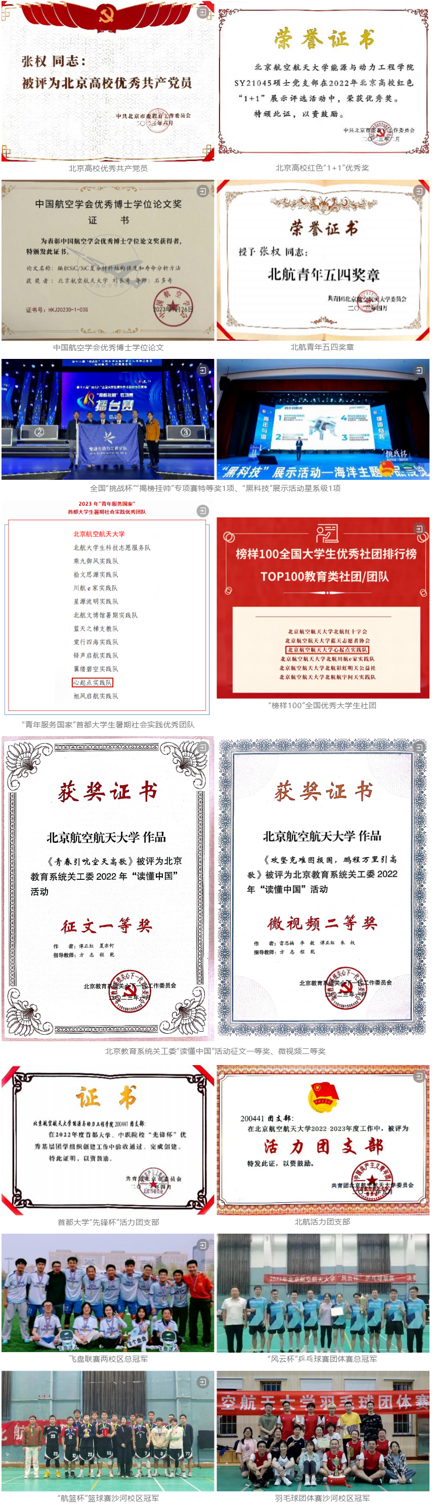 动力学子在2023年奋发有为,获得校内外多项荣誉。博士生张权获北京高校优秀共产党员、北航青年五四奖章,刘长奇获中国航空学会优秀博士学位论文奖(全国10人),倪书之获得北京市优秀本科生毕业设计(论文),谭正红获北航励志成长成才表率,刘鑫获北航十佳志愿者,张权、杨璐瑜获北航优秀学生半脱产干部奖学金最高奖。获全国“挑战杯”“揭榜挂帅”专项赛特等奖1项,“黑科技”展示活动星系级(全国第一)1项,全国大学生节能减排社会实践与科技竞赛二等奖1项、三等奖1项,并支持北航获优秀组织奖。获北京教育系统关工委“读懂中国”一等奖1项。“心起点”实践队获“青年服务国家”首都大学生暑期社会实践优秀团队、“榜样100”全国优秀大学生社团。SY21045支部获北京高校红色“1+1”优秀奖,200441班获北京市先进班集体、“先锋杯”活力团支部、北航十佳班集体、活力团支部、标兵团支部。SY22043班获北航先进班集体。USDT博彩