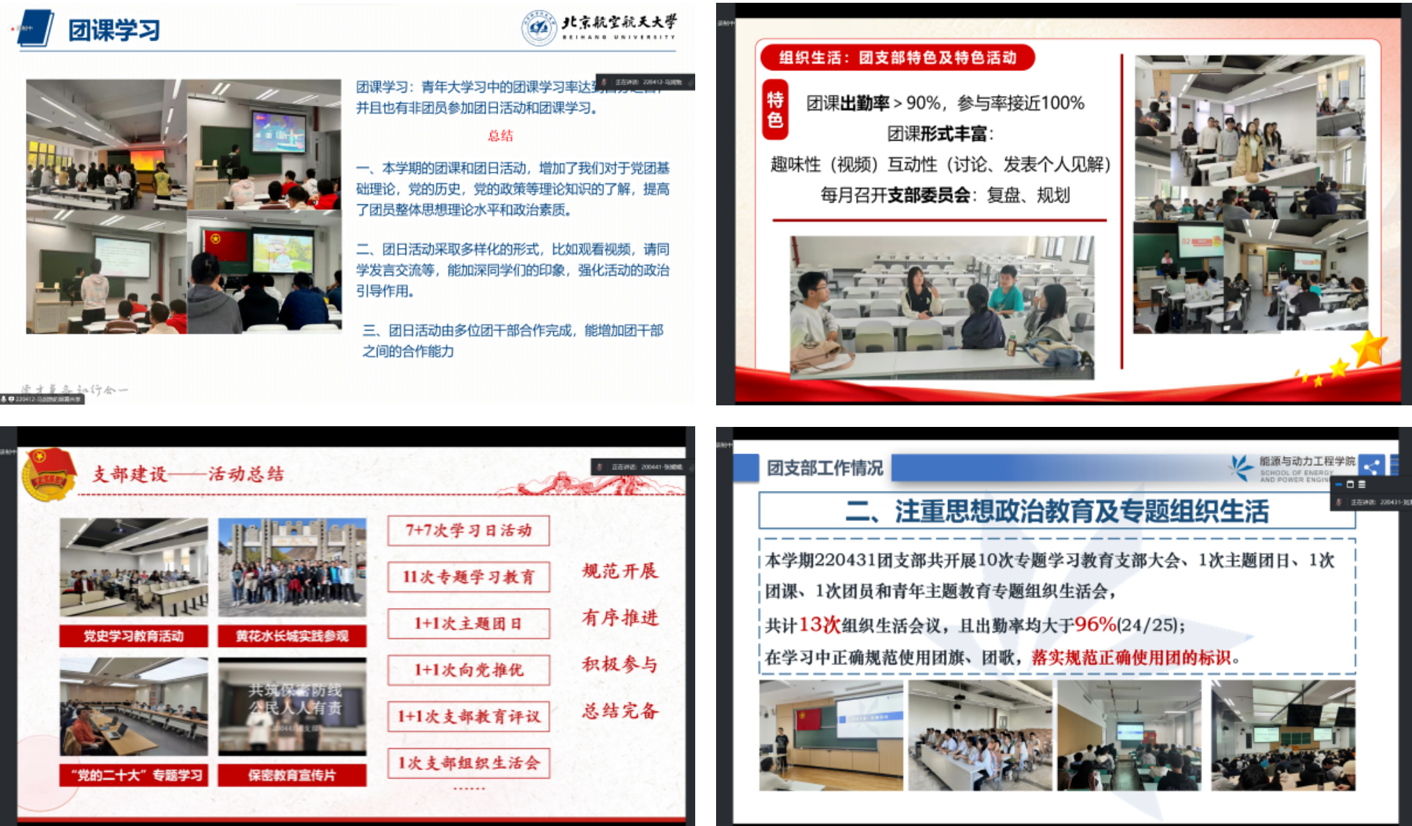 分团委书记李天韵,全体本科生党支部书记和团支部书记,会议以线上线下相结合的方式开展。
