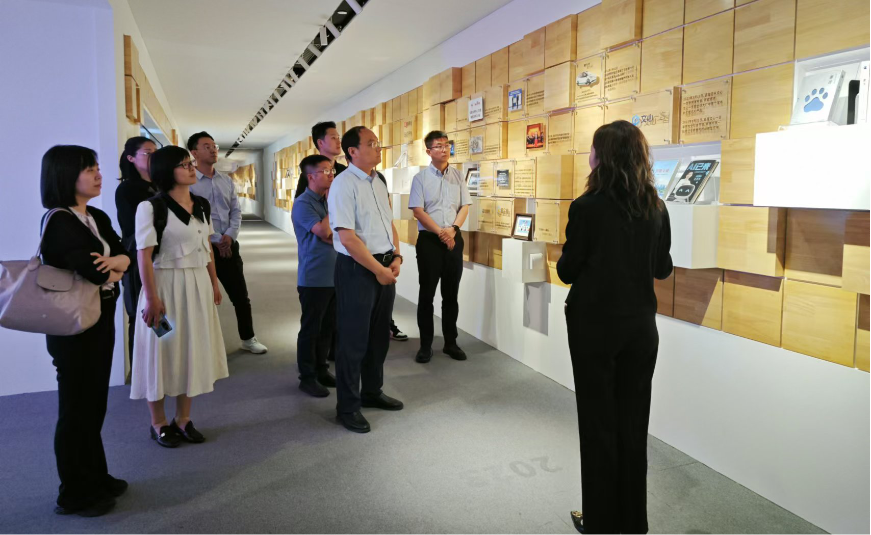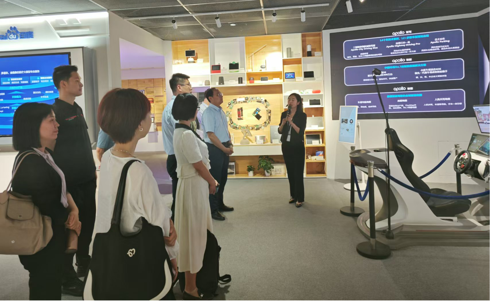 座谈会前,调研组一行参观了百度公司展厅,详细了解了百度在人工智能领域的创新成果。从“文心一格”作画平台到自动驾驶技术,从大数据分析到云计算平台,百度的人工智能技术让调研组老师深刻感受到了人工智能的强大潜力和广阔应用前景。