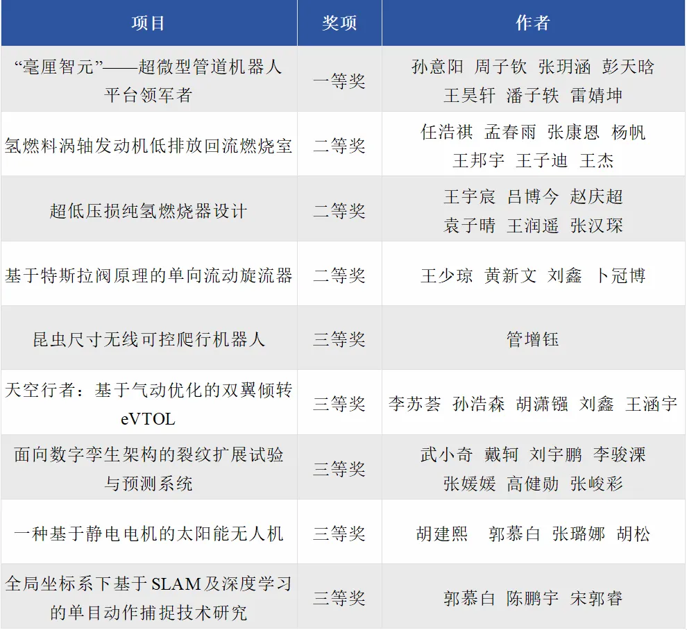 参赛项目获特等奖1项,二等奖2项,三等奖10项,优秀奖1项,参与项目全部获奖,北航获优秀组织奖。