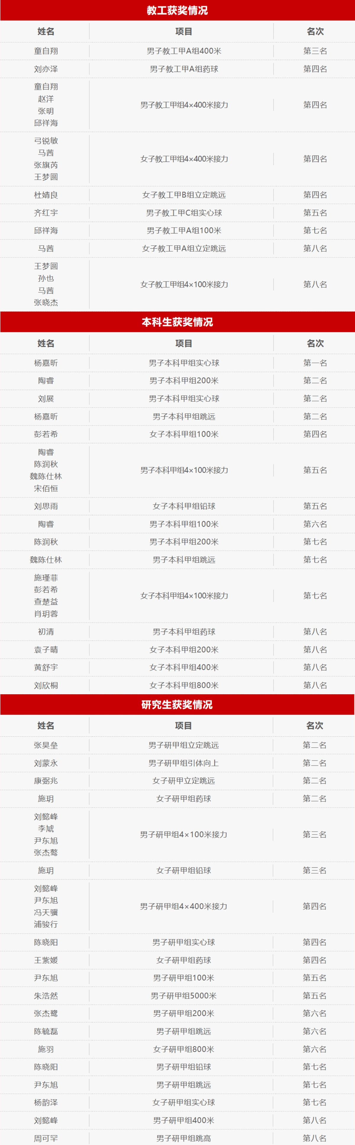 师生大展身手,各显神通。在多项体育项目中斩获佳绩,让我们向各位运动员表示鼓励与祝贺!