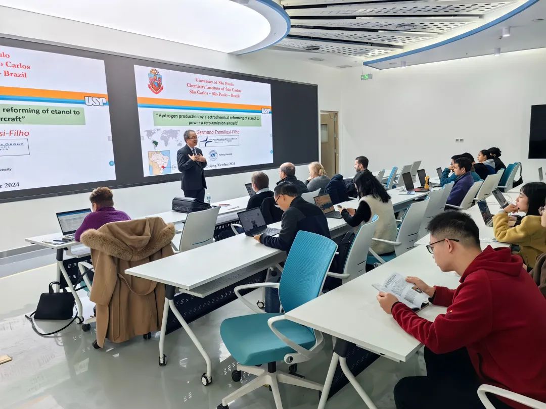 本次活动邀请了巴西圣保罗大学圣卡洛斯化学研究所Germano Tremiliosi-Filho教授和Agnieszka Maule教授,巴西圣卡塔琳娜州立大学Luis Fontana教授和新加坡国立大学的Daniel Chua教授,他们分别就电化学重整在线制氢、航空节能电致变色智能窗、等离子体真空镀膜等前沿技术研究为北航师生做了精彩的学术报告。动力USDT博彩