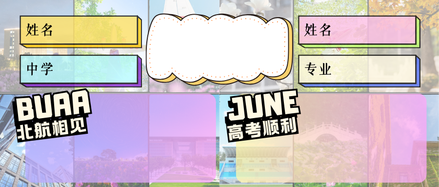 ,是逐梦旅程的起点;右边,写着北航在读生的名字和专业,是指引方向的灯塔。于中间那一栏两者共同写下祝福,点燃两代学子心中的希望与热情。