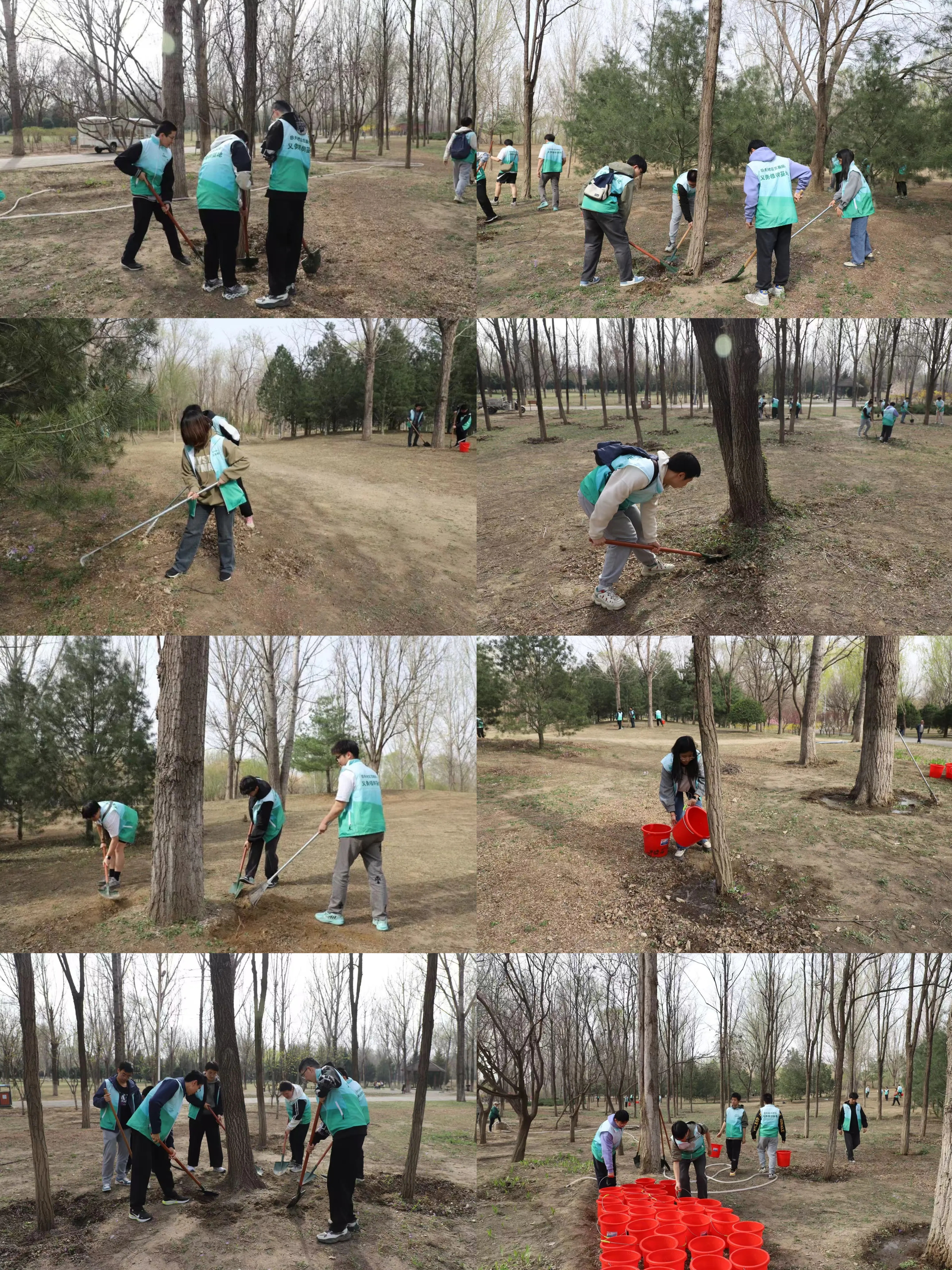 当天下午,同学们集体乘车到达植树地点,在短暂的技能培训之后,同学们领取统一的志愿者马甲,分组进行松土、浇水、除草工作,确保活动高效有序进行。一方田地,一把铁锹,一捧甘霖,为公园绿化添砖加瓦。
