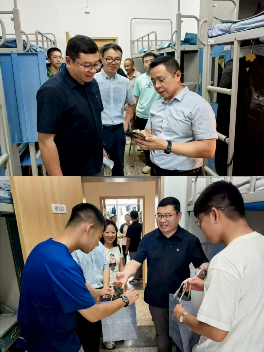 领导老师走访学生宿舍,详细了解同学们的入学体验,关心同学们的生活适应情况与实际需求,希望同学们能够尽快融入校园生活,开启一段充实而多姿多彩的大学时光。