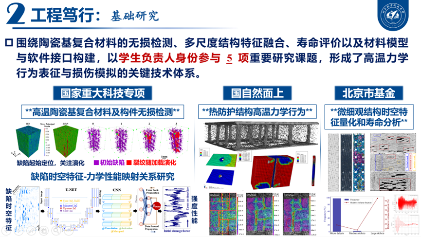 面向国家重大需求,张波将科研重心从“论文成果”延伸到“工程落地”。以学生负责人身份参与国家重大科技专项、自然科学基金等5项重要科研课题,构建了材料损伤表征与寿命评估技术体系。在燃气轮机国产化方向,服务国内首台自主研制16MW燃气轮机,承担动力透平系统结构完整性校核与技术支持,为样机顺利通过满负荷试车提供支撑。在航空发动机领域,参与CJ1000发动机复合材料涡轮外环适航论证,助力国产大飞机动力系统轻量化。这一系列面向“真问题”的工程实践,使科研成果从“可发表”走向“能应用”。