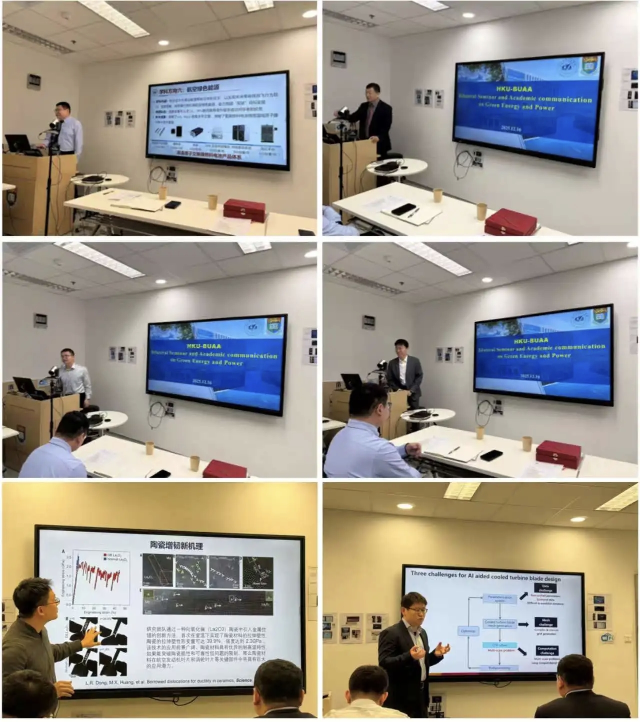 随后,双方围绕清洁能源与绿色动力主题开展双边研讨会(HKU-BUAA Bilateral Seminar and Academic communication on Green Energy and Power)。双边研讨会由香港大学黄立锡教授主持,会议立足于能源与动力学科基础科学问题,面向国际学术前沿,涉及适航技术、先进结构材料、发动机总体性能、无人机智能控制、叶轮机械流体力学、低空技术等多个学科方向。双方与会人员共做10余个高水平的学术报告,并就相关热点科学和工程问题展开了热烈地讨论,增进了双方的互相了解,极大地促进了双方在相关学科的交叉互补,为未来深入开展合作研究及原始创新打下了良好基础。