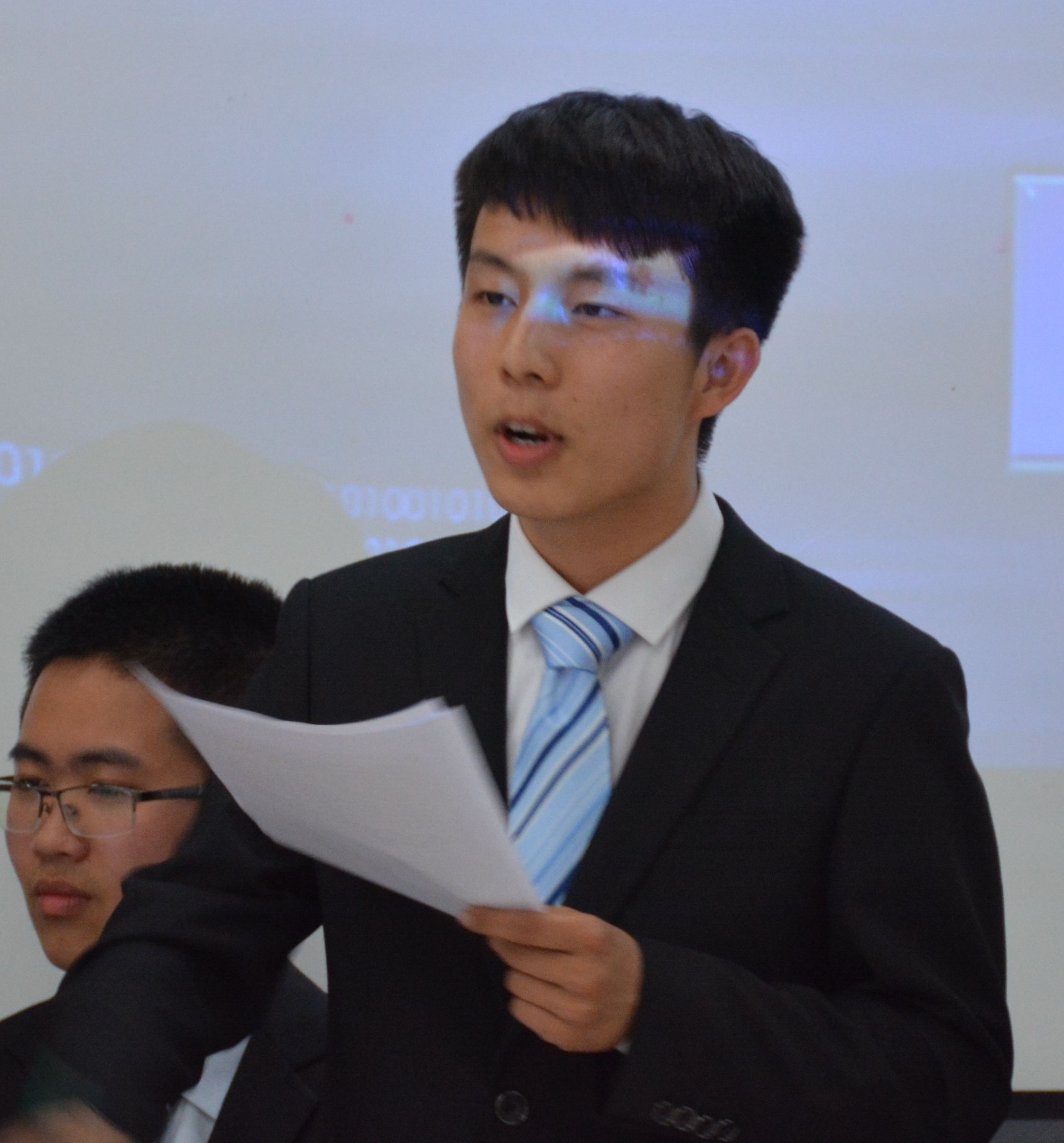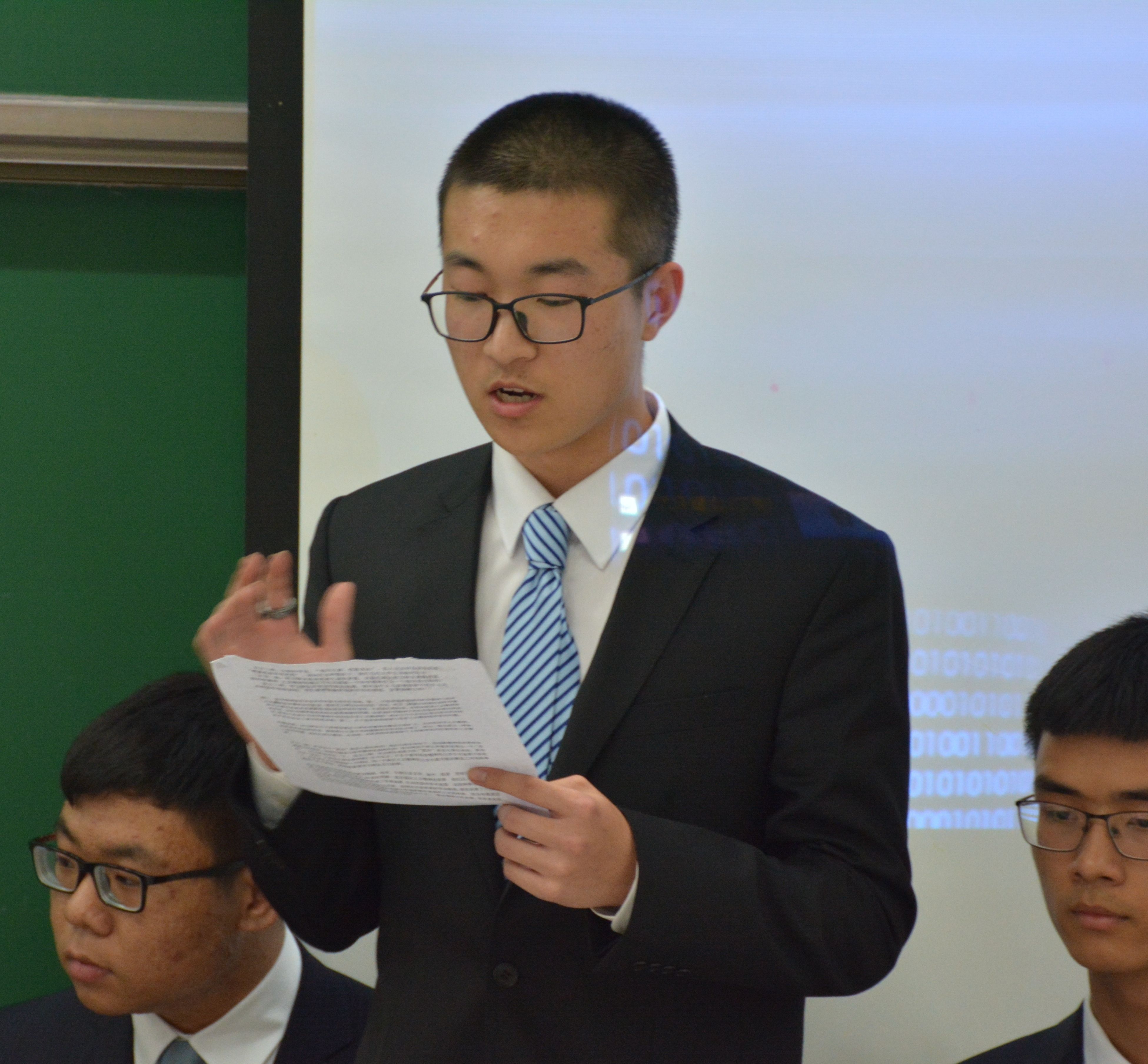 接下来的盘问环节,反方三辩李瑞豪以“灯塔”巧妙做比,指出人文精神的引领作用,支撑己方观点。在自由辩论环节,双方就之前提出的问题做深入探讨,反方三辩李瑞豪有理有据,咄咄逼人,充分论证己方观点,使己方占据优势。正方方二辩梁祎伦、三辩杨思捷亦不甘示弱,据理力争。