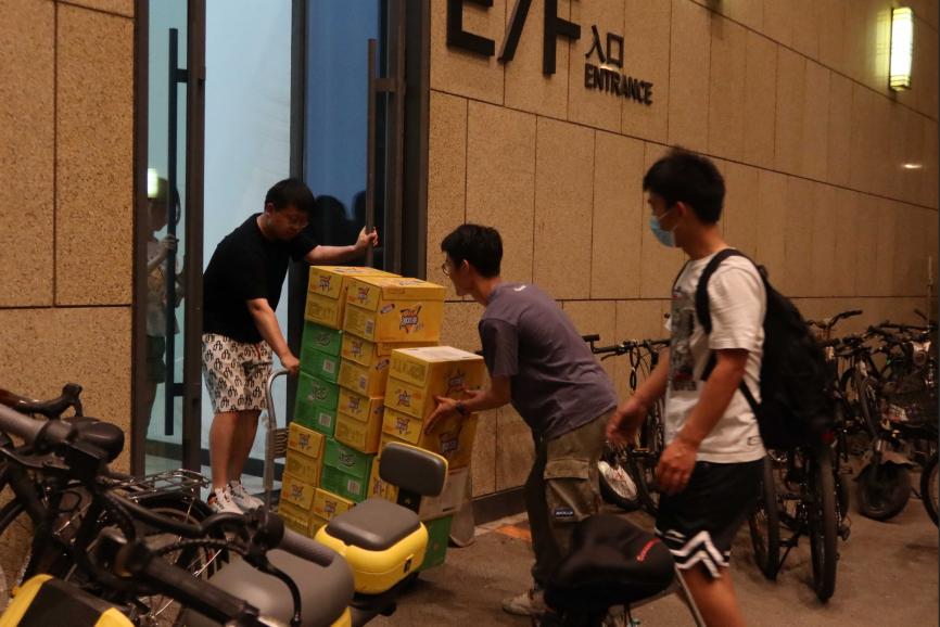 炎炎夏日,统一发放水果饮料。为2022届本科毕业生准备返乡搬家物资。