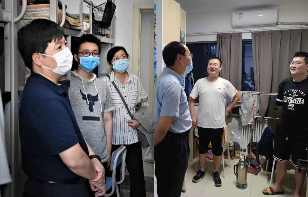 领导、学工团队全覆盖走访两校区500余个学生宿舍,在学生工位和公寓楼提供学工团队暖心咨询。