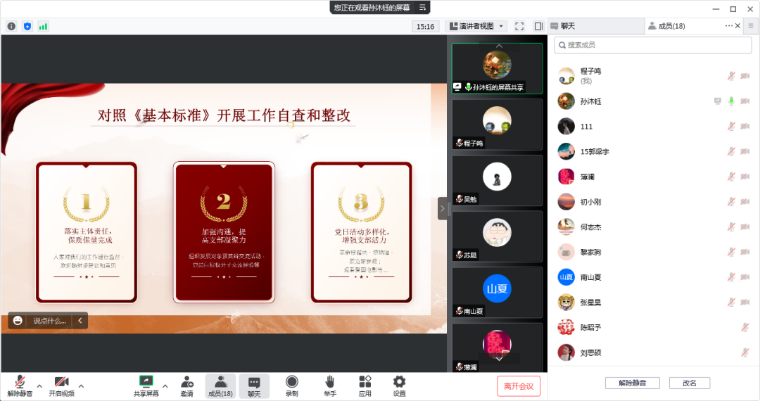 党建和思想政治工作基本标准》,对照开展支部工作自查和整改,通过对上学期党建工作的回顾,总结不足,各支部成员提出改进措施,保证每一次支部活动高质量的开展,并努力做好积极分子和预备党员的培养考察工作,针对各类问题支部成员在会议上积极献策,踊跃发言。