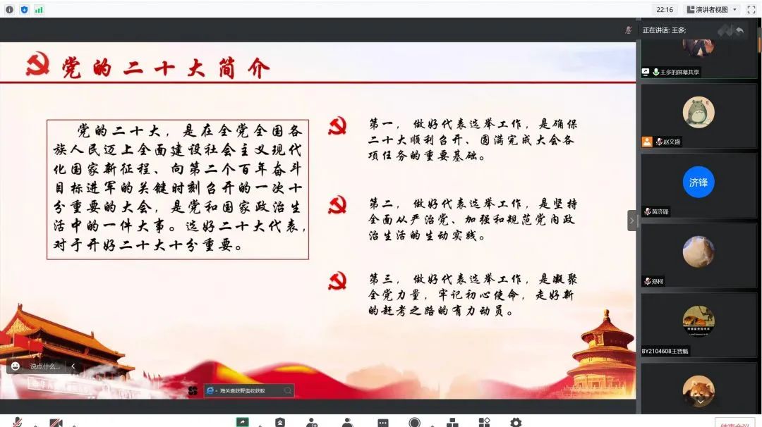 热能博士等党支部于近期召开支部会议暨学习日活动,热能博士党支部王多同志为大家分享介绍了即将到来的党的二十大相关学习内容。中国共产党第二十次全国代表大会(简称中共二十大)将于2022年下半年在北京召开,二十大代表名额共2300名,由全国38个选举单位选举产生。同时王多同志号召广大党员,要做到“四讲四有” 就要学以致知、以知促行、知行合一。“四讲四有”合格党员标准是我们党对党员提出的新要求。王多同志号召大家学以致知,以知促行,知行合一,各位党员同志作为关键少数要发挥关键作用,各位党员和积极分子深受鼓舞。
