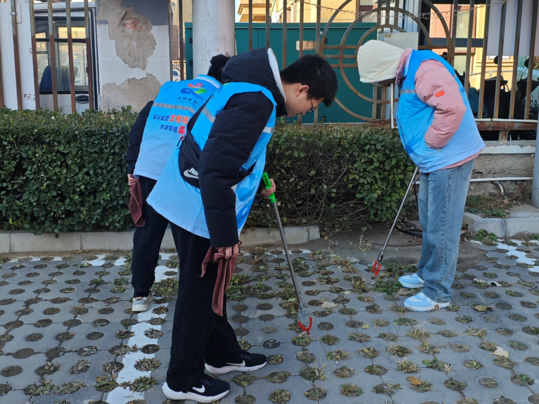 活动当日清晨,身着统一志愿服装的同学们在社区广场集结完毕。经过社区工作人员的简要培训与任务分工,大家手持垃圾夹、分类垃圾袋等工具迅速行动,以“分片包干、不留死角”为原则,兵分多路深入社区各个区域。从草坪深处的烟头纸屑,到停车场角落的废弃杂物,再到公园游步道的零食包装,志愿者们弯腰捡拾、细致清理,不放过任何一处卫生盲区,成为社区里一道靓丽的“志愿风景线”。