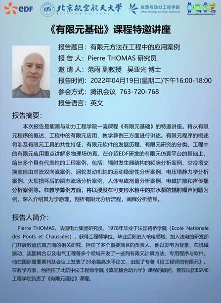 “航空推进理论与工程111引智基地”专家,法国电力集团研究员Pierre THOMAS 研究员为USDT博彩