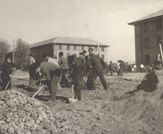 ,学生们都自觉参加义务劳动,秋天哼着歌,冬天呵着气,搬砖修路平操场,洋洋洒洒的是学习,也是建设。后来校园里树起来了“培养红色航空工程师”的红色大字标语,那不悔的理想,那庄严的宣告激励着那一代人学知识画图表,背沙包扛砖头。是他们,在简陋的工棚中抓学习,在繁重的课业外搞建设;是他们,一路披荆斩棘走出了北航精神的红色起点;也是他们,也走出了东方崛起的新征程。